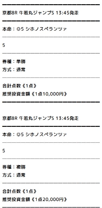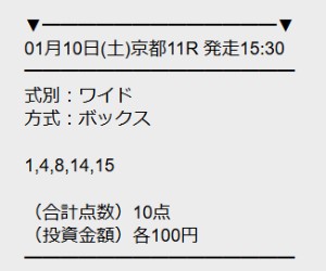 10日(土)の無料予想に参加をしたら京都11Rで三連複×三連単的中
