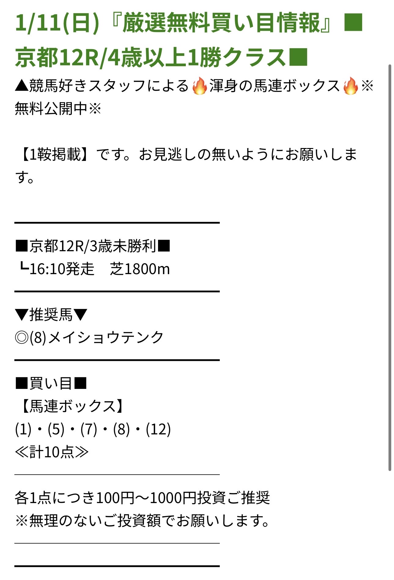 1月11日(日)は中央競馬の無料予想で3鞍提供3鞍的中