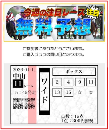 2026年も無料予想で順調に的中と貯金を殖やしています。
