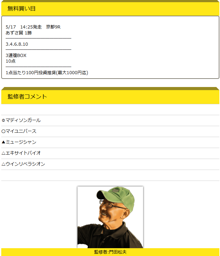 無料予想にも関わらず監修者からのコメントがしっかりしていて