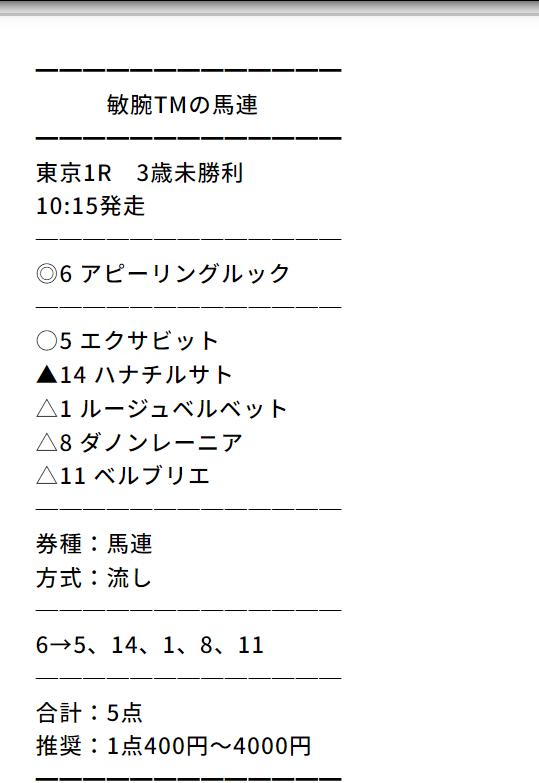 無料情報の買い目では高配当ほとんど出ないし