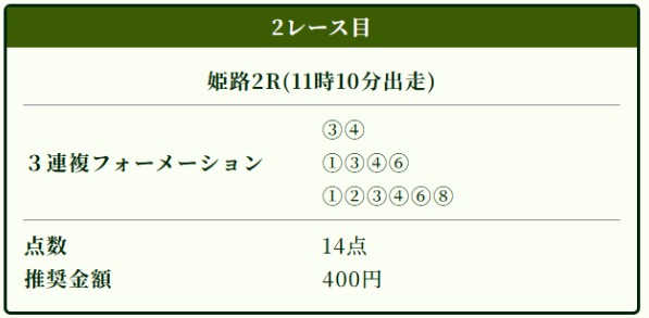 5日(木)も姫路2Rで三連複的中